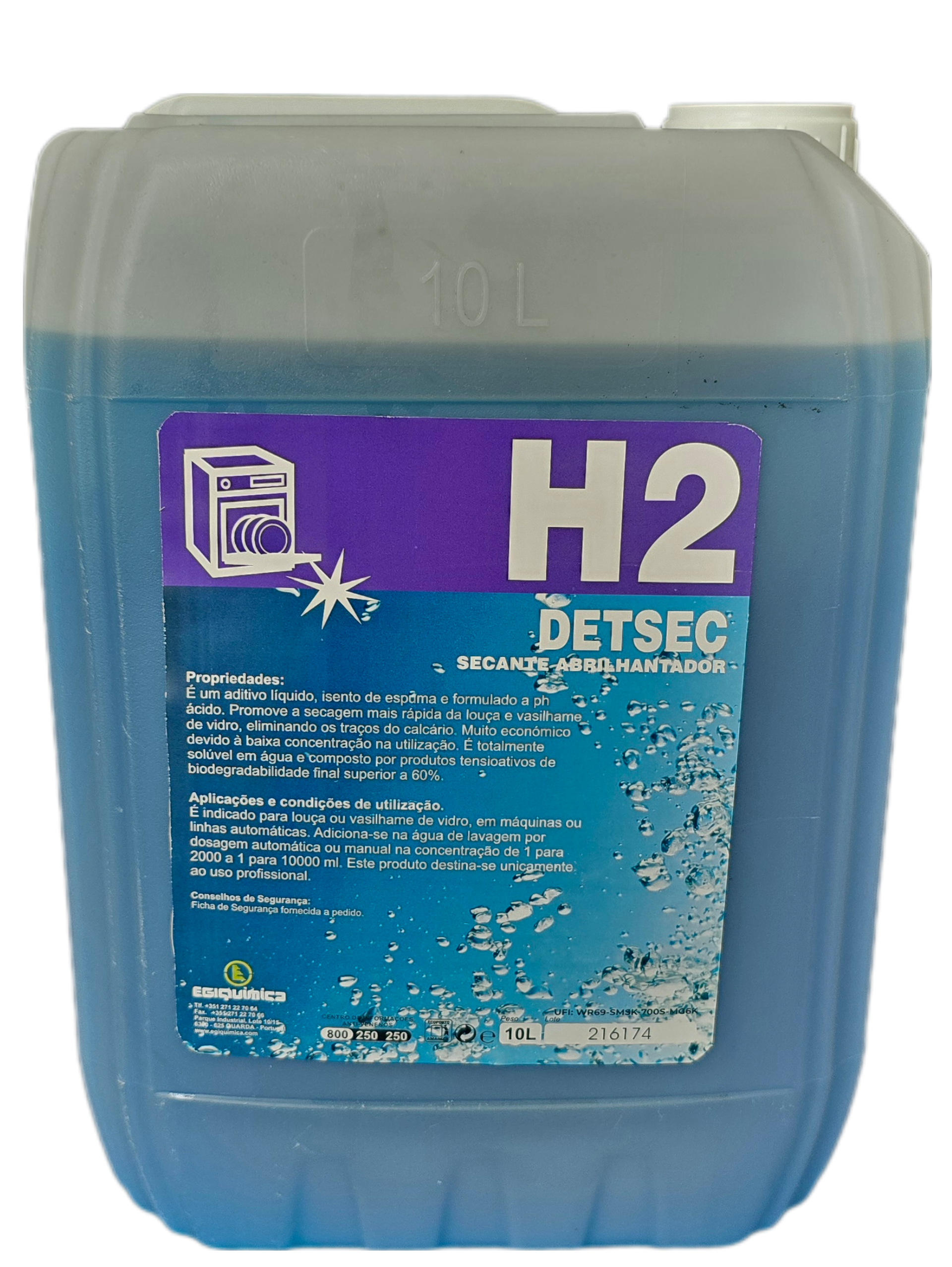 Este produto é um secante abrilhantador líquido, sem espuma e com pH ácido, usado em máquinas de lavar louça para acelerar a secagem de louça e vidros, eliminando marcas de calcário.
